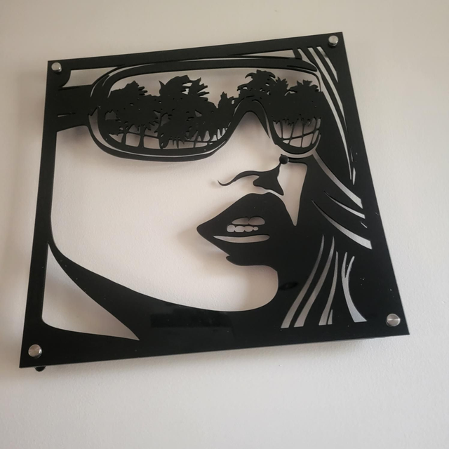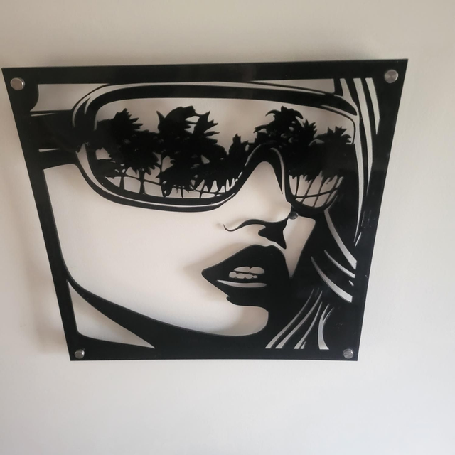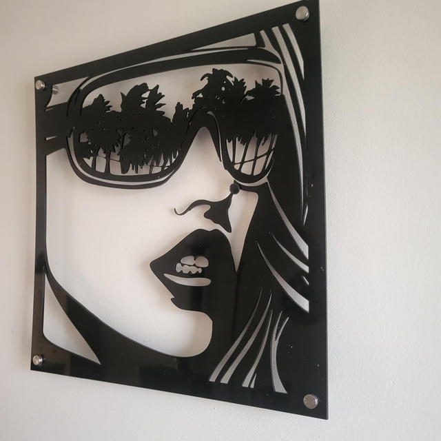 Cadre déco visage avec reflet palmiers dans les lunettes